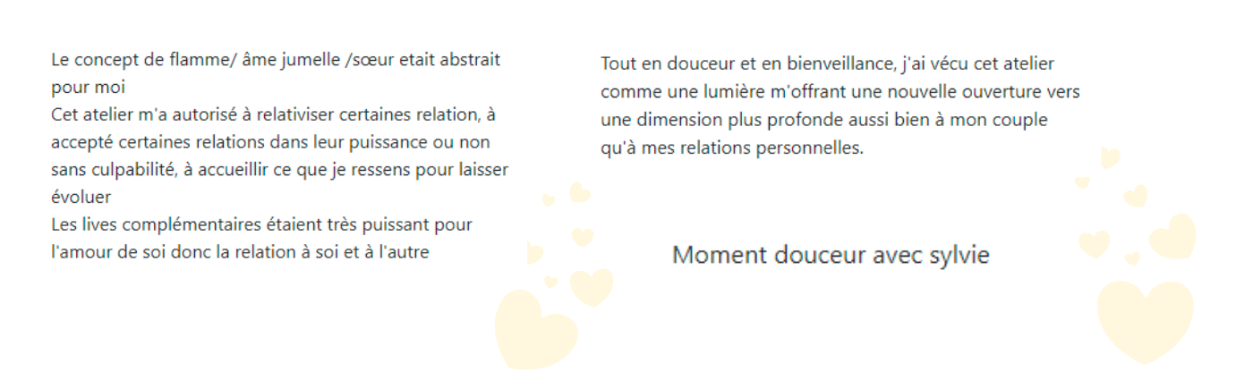 - Ma présence active dans notre groupe Facebook privé "Amour, Âmes Soeurs et Flammes Jumelles".